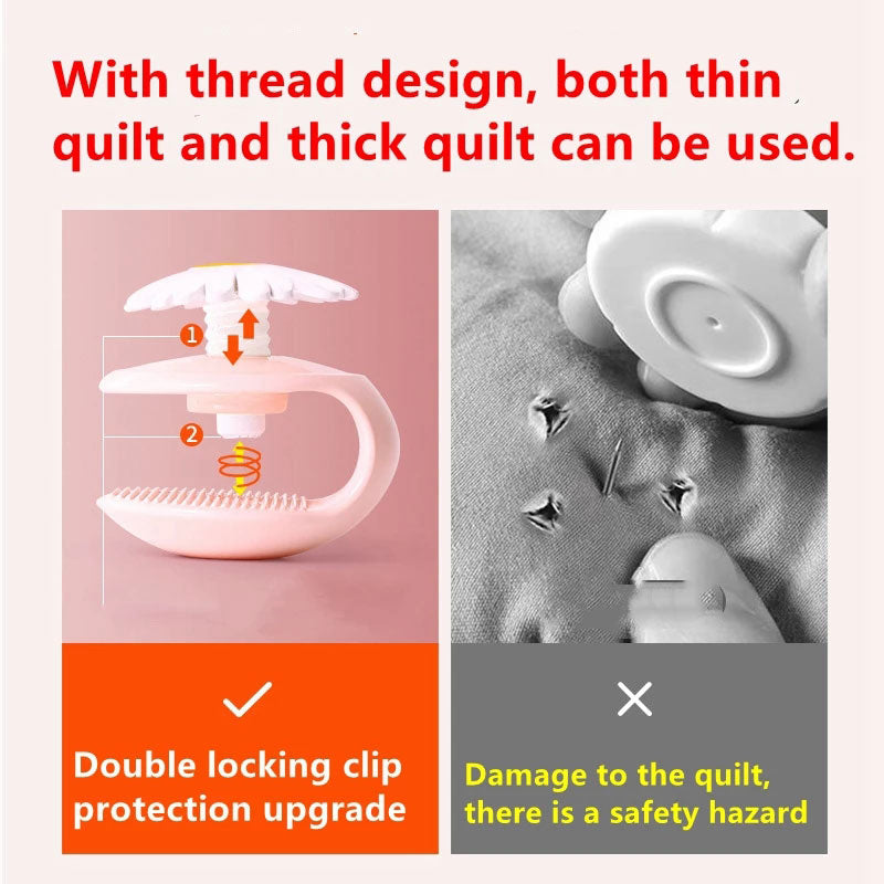 The clip has no needle design, what's more, it won't hurt your family's skin, it is very safe and suitable for adult or child quilt.