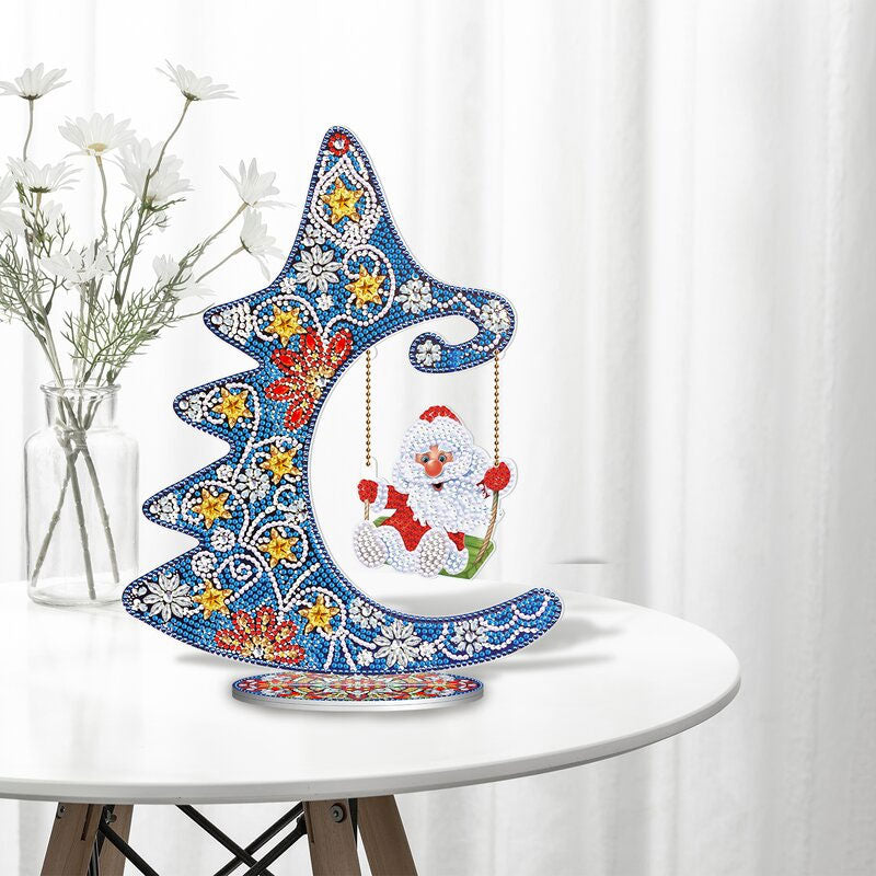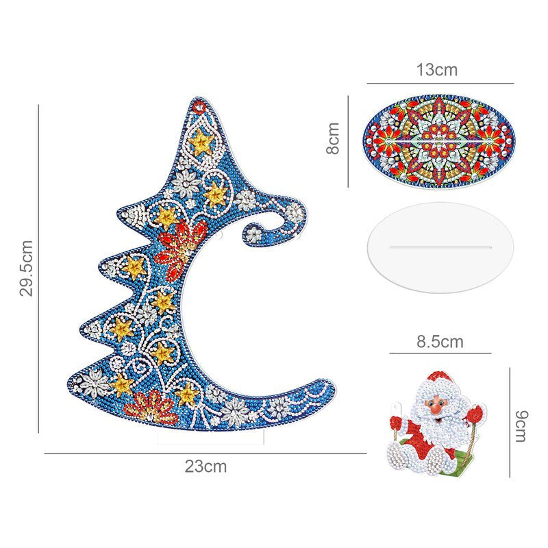DIY diamond 5D painting steps: 1. Open the box, check the kits whether complete; 2. According to the color code, choose a color into the plate; If you paste the same color at the same time, you can increase the speed; 3. Find the symbols in picture, beginning paste until finish it; 4. When you finish it,put some books on top, let it more firmly; 5. After the drilling is completed, paste the double-sided tape on the bottom of the Christmas tree decoration, tear off the double-sided tape, insert it into the base, string the small pendant on the rope, and HANG it on the Christmas tree.