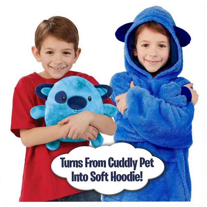 Your kids will stay warm and cozy the fun way with this Cute Doll Pets Plush Hoodie Sweatshirt! It is the fun, new pet that's also a super warm and soft hoodie! It stores as a pet but opens up to an ultra-soft and super warm oversized hoodie! The pet folds magically into the hood and zips securely inside! Perfect for when your kids are playing outside or lounging around the house!