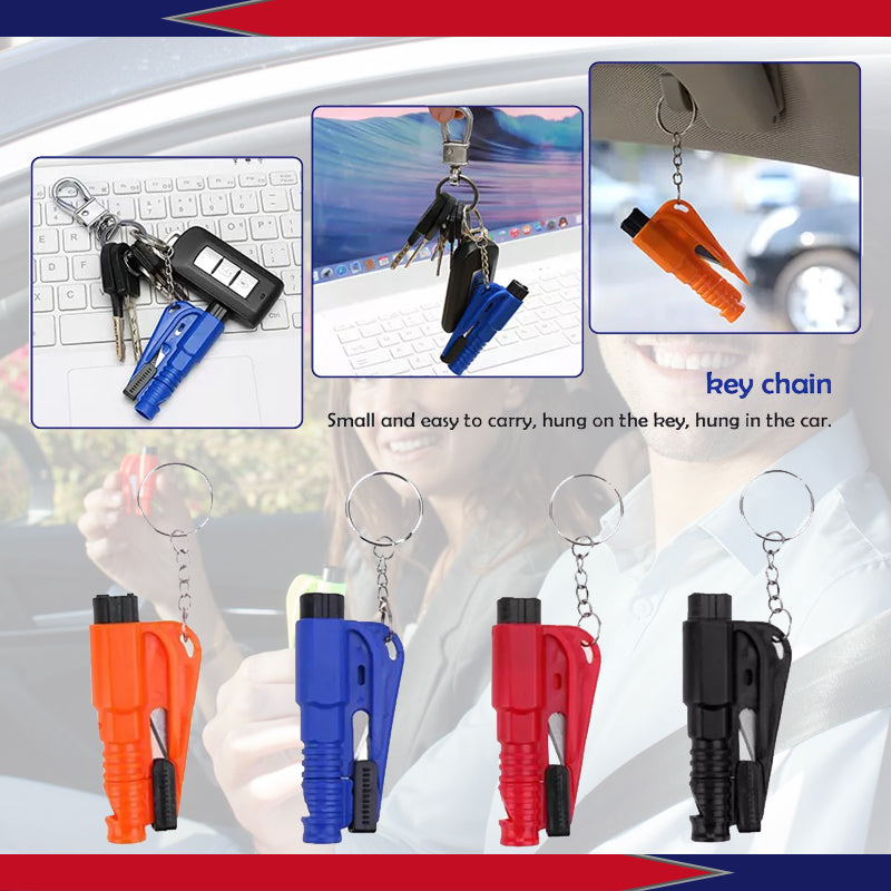 Seat Belt Cutter -- Quickly remove the escape device from the key fob, then remove the buckle, aim the blade at the seat belt, quickly cut the emergency.