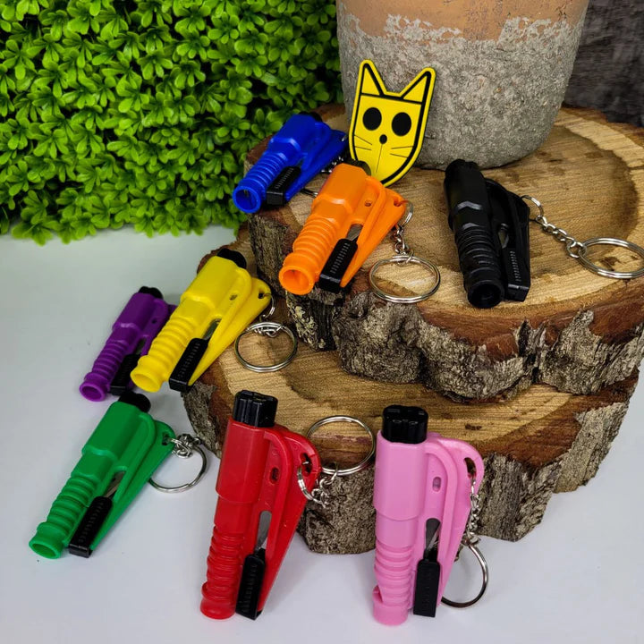 - With keychain design, it can be stored and hung in your car/keychain or bag, bright colors, easy to find and access, escape in emergency.