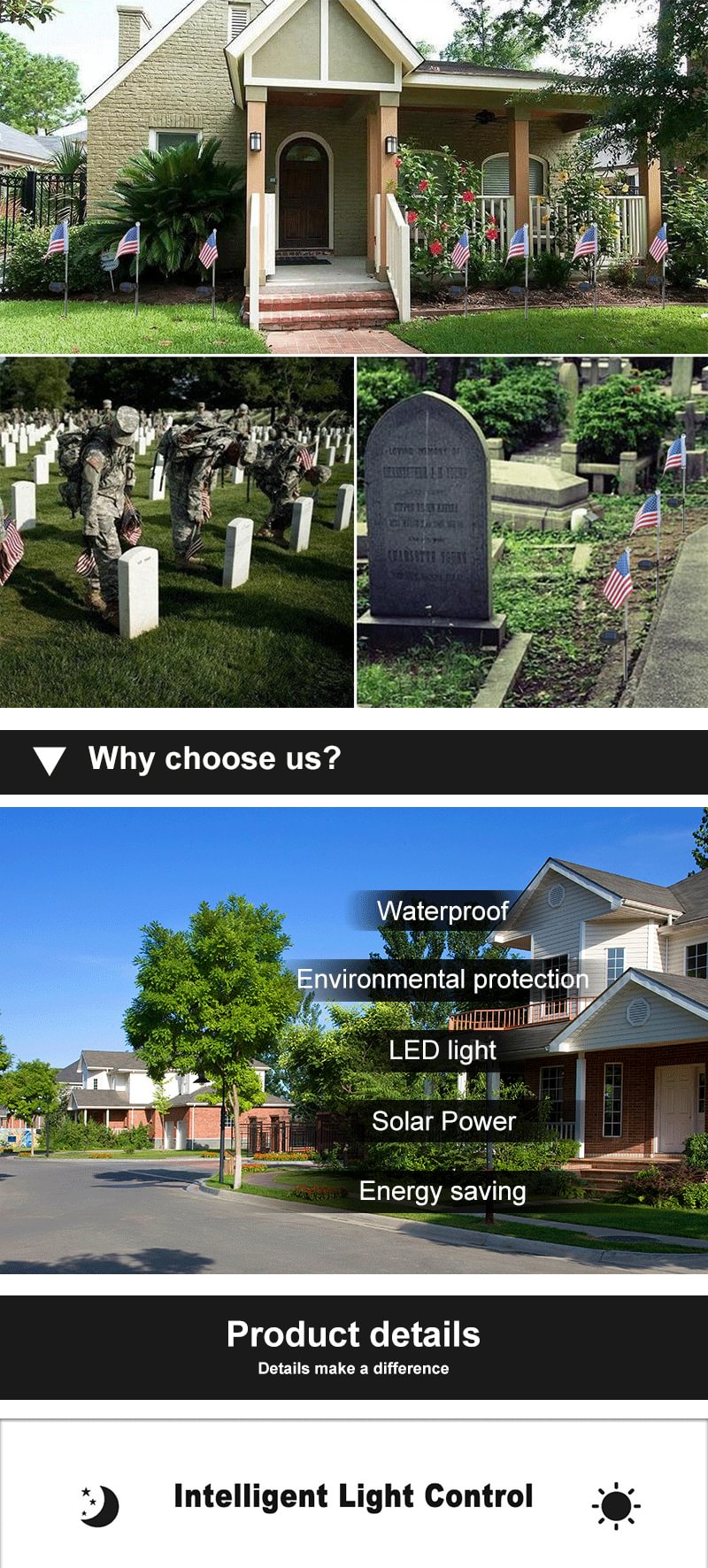 American National Flag Shape: The shape of the American flag is a good decoration and lighting for the Independence Day and other holidays.Can be easily used to decorate and add a delightful glow to your driveway, patio or gardens.