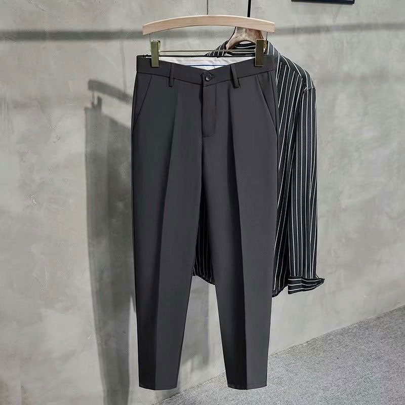 Pants Men's Slim Fit Pants, Men's Casual Versatile Fashion Stretch Pants Solid Color Slim Fit Skinny Feet Suit Pants, Perfect for Home, Travel, Office Use and Lounging.