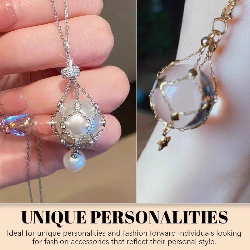 This necklace features lustrous pearls and a sophisticated mesh pouch design that exudes sophistication and elegance. Pearl styles add timeless elegance to your look and are perfect for both casual and formal occasions.
