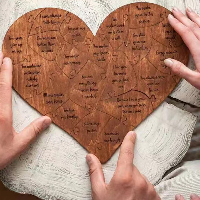 🧩Romantic puzzle: Each piece of this wooden puzzle is a chapter in your love story. Romantically carved, this is more than just a puzzle; it's a journey where you spend your most precious moments together. When your special someone solves the puzzle, they reveal your love story.
