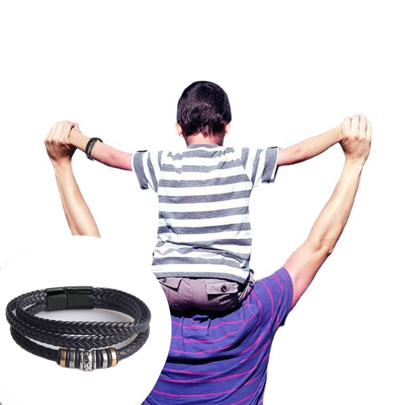 💕【Comfortable Material】This bracelet for son is made of high-quality genuine leather material, hand-woven tightly woven bracelet, soft and comfortable to the touch; with a special stainless steel magnetic clasp.