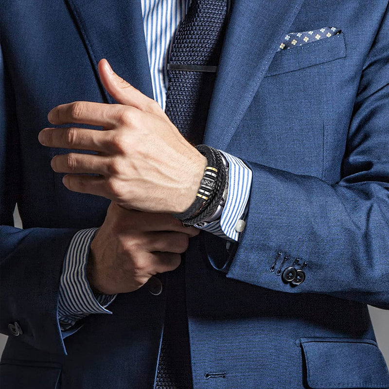 💕【Perfect Gift】This inspirational braided leather bracelet for men is an ideal gift for your son's wrist bracelet, perfect for any gift giving occasion, a perfect gift for Christmas, Thanksgiving, Graduation, Birthday and Casual Day Wrist Bracelet Great gift for my son. They are sure to feel your love when they receive this gift.