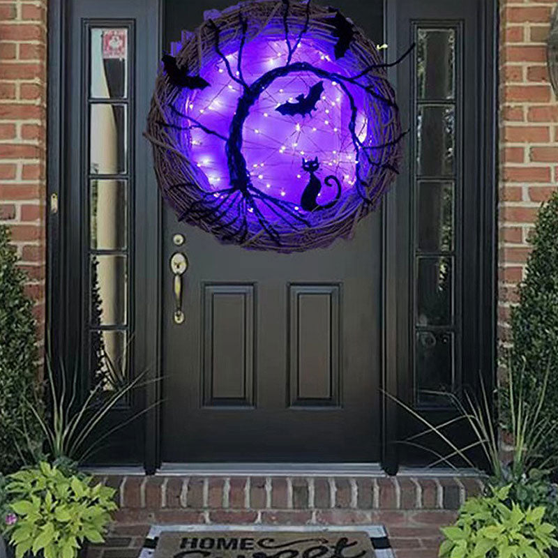 1 x Bat And Cat Wreath Halloween Rattan