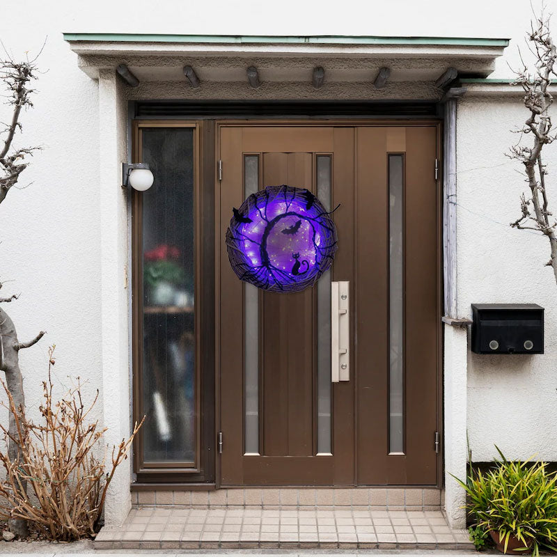 WIDE USE: This glowing halloween door decoration has a unique design for mantels, front doors, front porches, wall decorations and other halloween decorations. It transports you and your guests into a terrifying fairy tale world.