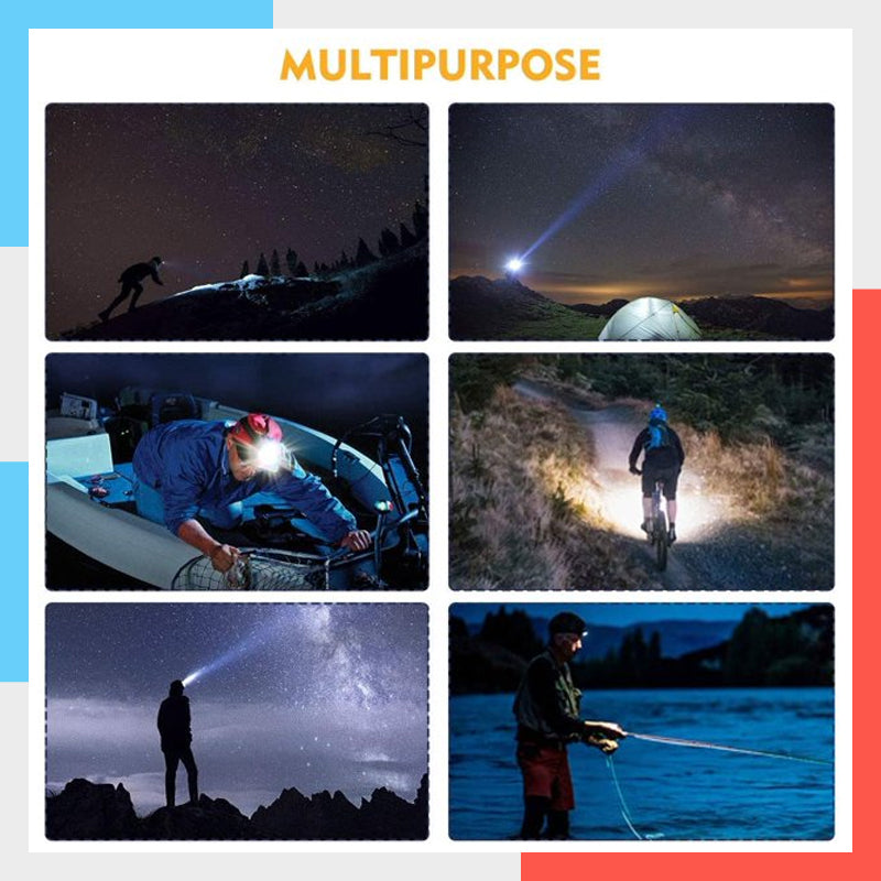 [Wide Application]Ergonomically designed elastic headband Makes this rechargeable headlampperfect for Long Distance Runners or Anyone Else Looking For a Comfortable Fit.It is the perfect addition to your toolbox, fishing, hiking, backpacking, or hunting.