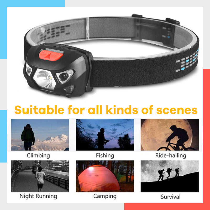 [SENSOR ENHANCE] This rechargeable headlamp could be turned on/off bywaving your hand under the motion sensor mode.We upgrade it and now you can use it to control all the modes.