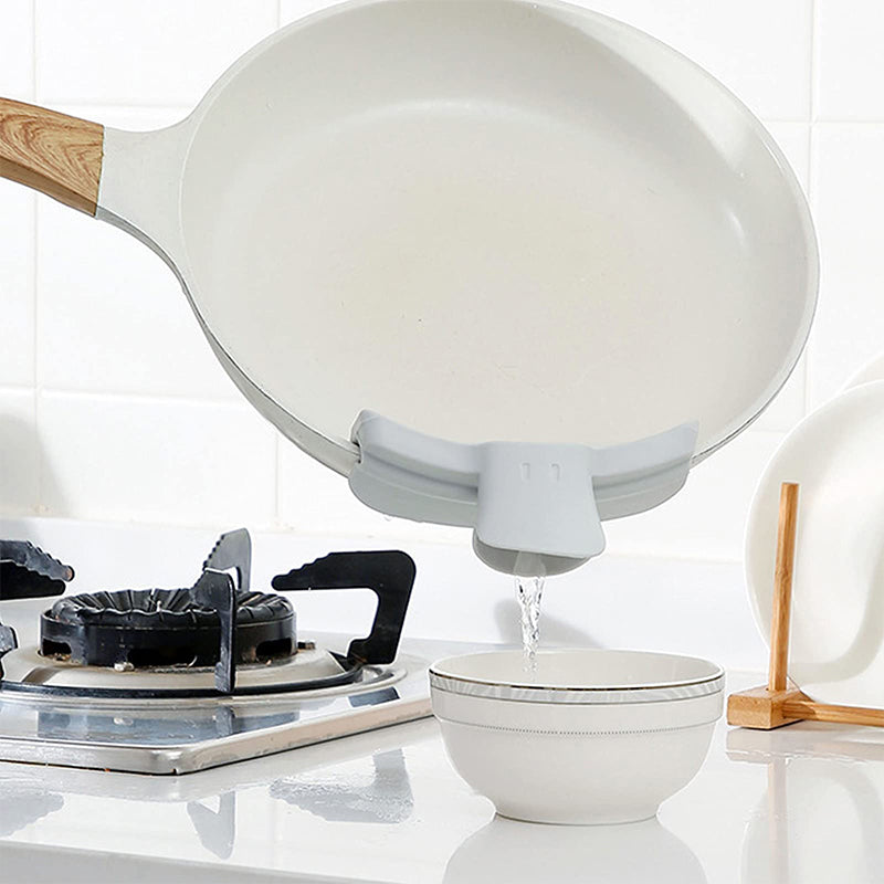 Widely Used: This funnel will attach snugly to most pots, bowls, or pans for easy, no fuss straining,quick and easy.The pour spout helps to pour the water, soup, oil from bowls, pans, pots to stop messy spills. Space-saving: Tighten the food by sandwiching it on the side of the pan, allowing you to grab the pot with both hands.This environmtally friendly kitchen gadget is also easy to store.