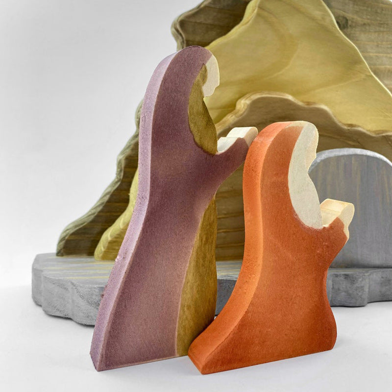 4. Style B:?The mountains are 3 separate pieces, stained in different tones, that have been joined together to form one piece. The gray base is a separate piece, as is the stone that covers the tomb opening. The stone can be placed in any position that you want.The cross is removable. The mountains have 2 pegs on the back that insert into 2 holes in the cross to hold it in place. The angel's halo is a separate piecethat can be placed on her head.