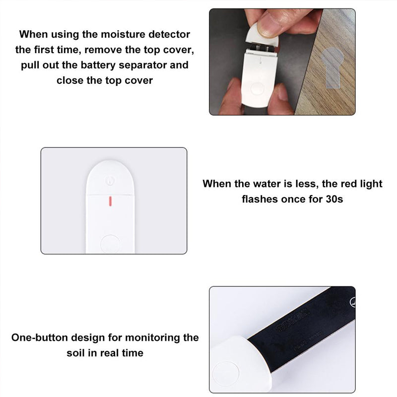 1. Powerful function: The black strip area of the moisture detector helps you to quickly detect the moisture in the soil. The color of the light displayed by the white host can accurately indicate whether the plant needs watering.