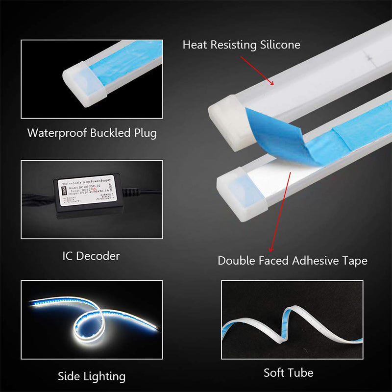 🚧Flexible: Easy to install everywhere on your car. It doesn’t need to open the headlight housing. You can use them as daytime running light, turning signal light, bottom neon light, headlight decorative light and so on.