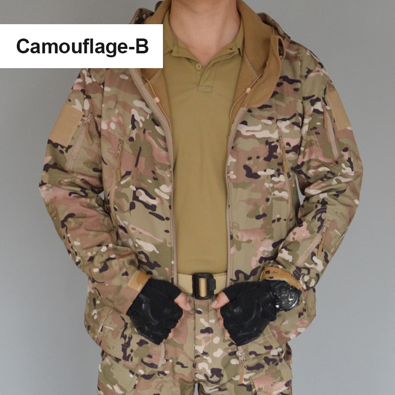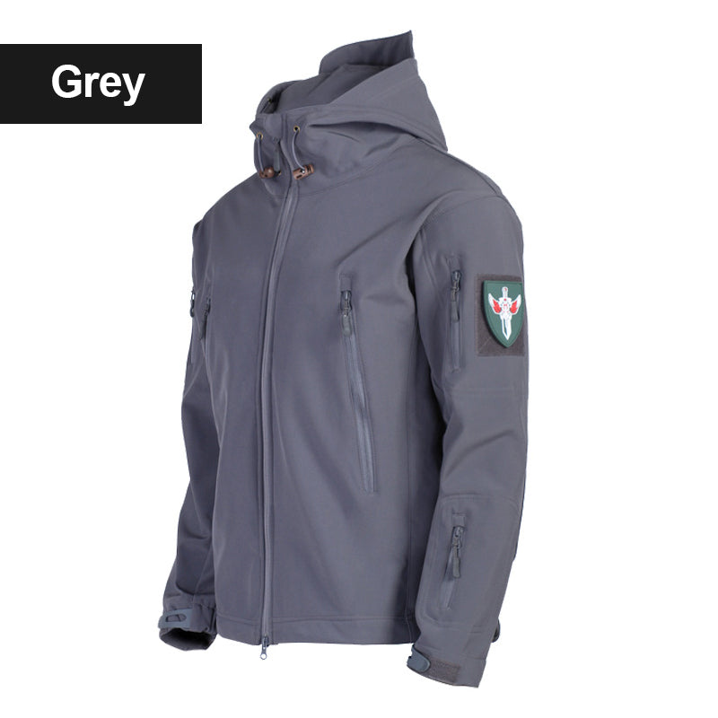 • Design: Military tactical design with stand-up collar and full zip up, patch on each arm.