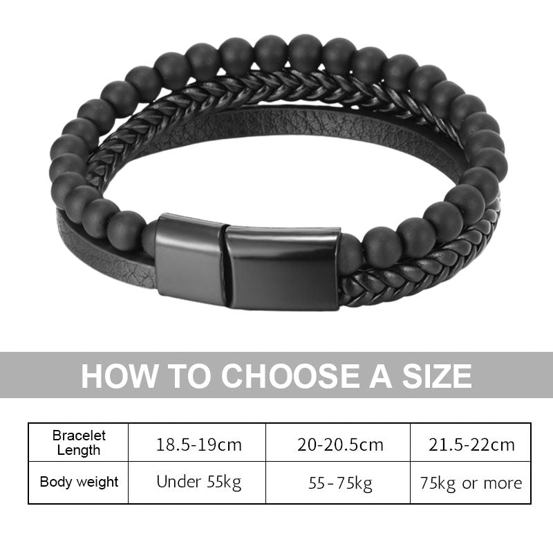 Style: Combining beads with leather, this men's bracelet combines vintage natural chic with modern trends. The bracelet ends with a magnetic clasp. It is noble and fashionable. Beads and leather are finely textured, adding value to the bracelet.