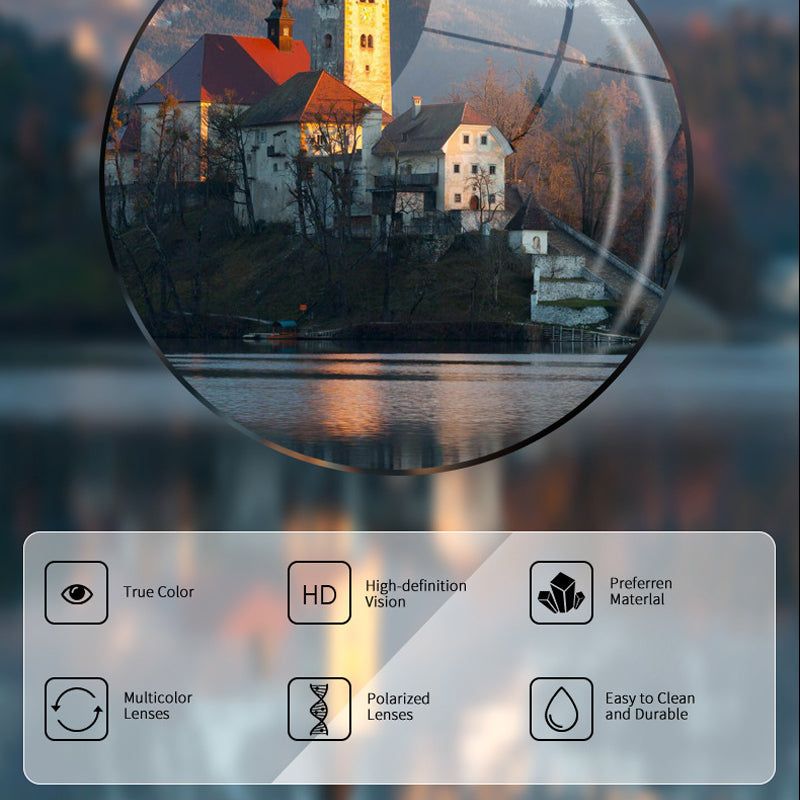 ăPolarized LensesăPolarized sunglasses can reduce glare reflected from roads, water bodies, snow and other horizontal surfaces; restore true colors, eliminate reflected light and scattered light, perfectly protect eyes.