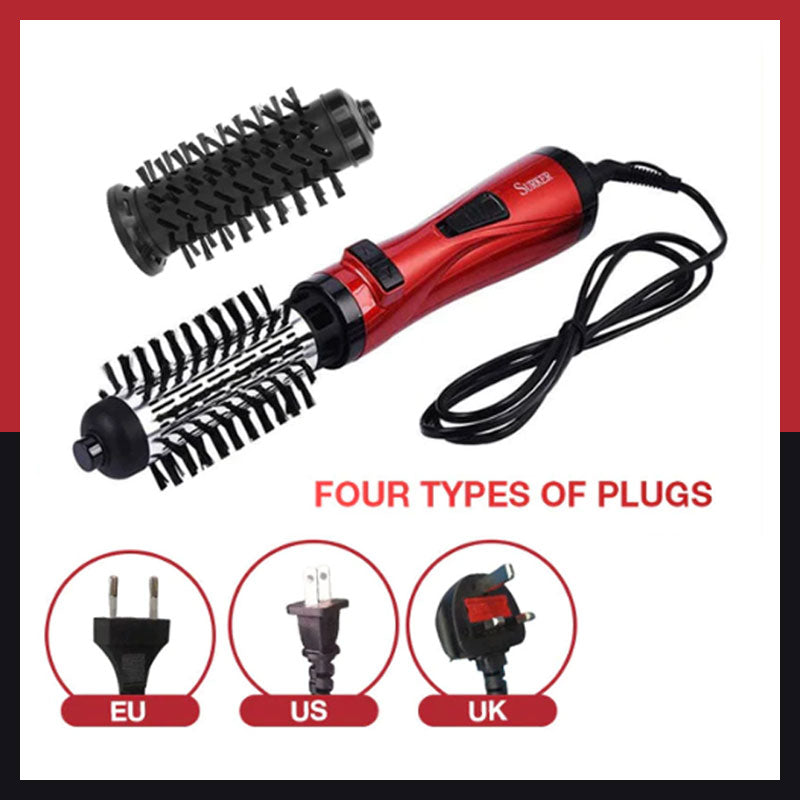 This hot air brush shaper and dryer are equipped with two interchangeable rotating brushes. A larger brush barrel is perfect for thick hair. A smaller lens tube is suitable for softer and more casual hair.