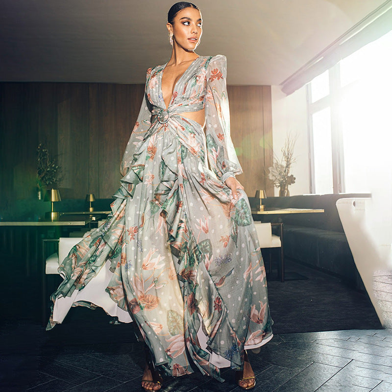 New V-Neck Dress With Open Waist And Backless Intertwined Lantern French Dress