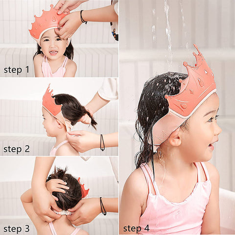 3-in-1 design shampoo shower cap for baby shampoo shield, sun shading, and haircut, useful and helpful for children's daily life. Crown design can attract baby's attention and they will love it.