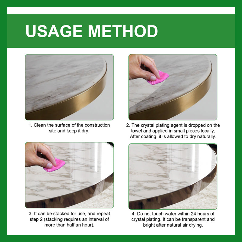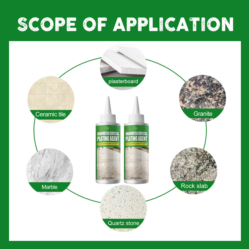 👍 Our stone crystallizers provide long-lasting protection for your stone surfaces. The product forms a strong protective layer on the surface to help prevent abrasion, as well as damage from water, oil and other substances. It also enhances the natural color and texture of stone surfaces, giving them a beautiful, lustrous finish.