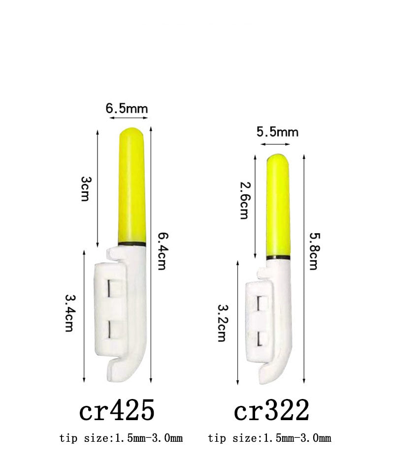 🐟Visual range: 30 meters, battery: 1 x CR322/1 x CR425 battery (depending on model), features: electronic, lightweight, eye-catching, suitable for night fishing.