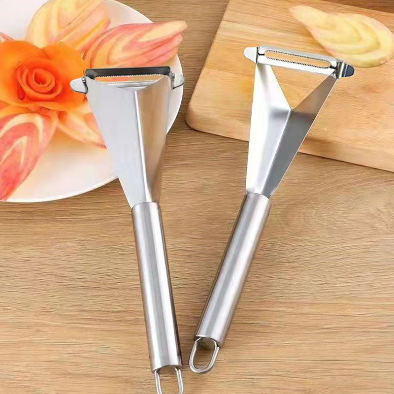 Multi-function: Unique design, functions include carving and peeling. An indispensable handy kitchen tool that can easily cut apples, watermelons, cucumbers, dragon fruits, and other fruits.