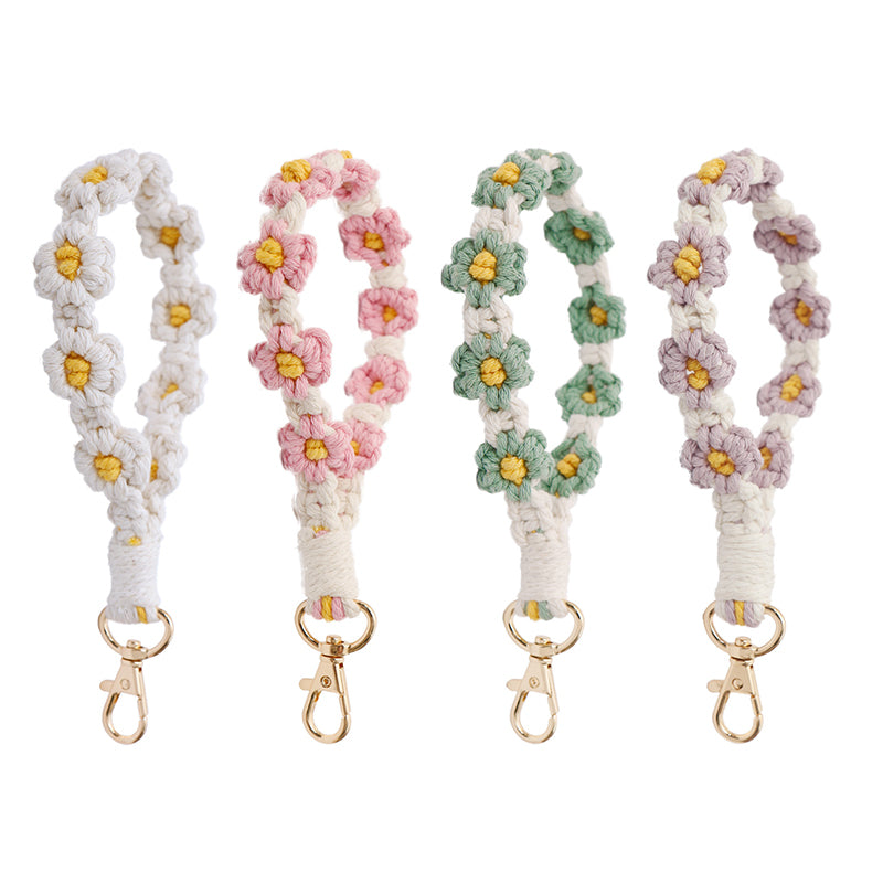 ✨ Step up your key game today with our Holiday Style Cross Border INS Floral Chrysanthemum Daisy Wristband Keychain Hand Woven Keyring!