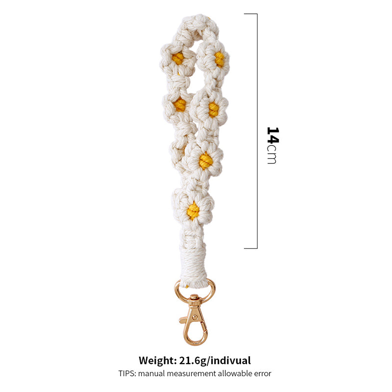 Introducing our Holiday Style Cross Border INS Floral Chrysanthemum Daisy Wristband Keychain Hand Woven Keyring - The perfect accessory to add some floral flair to your everyday essentials.