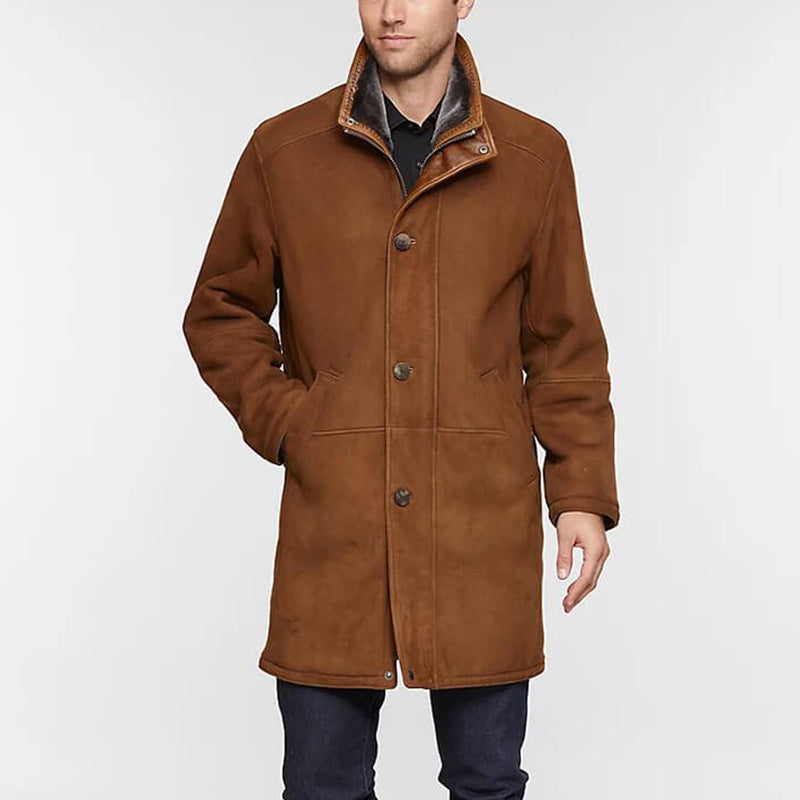 Button-front, ¾-length sheepskin coat for timeless style and the ultimate warmth in winter