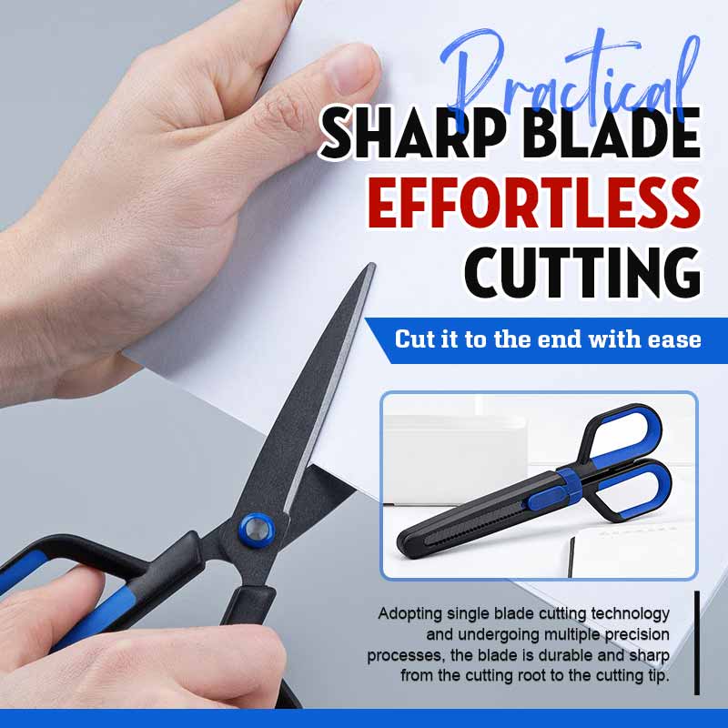🎉 Introducing Multipurpose Scissors - the ultimate cutting tool for your home and office needs. Made with high-quality Teflon-coated stainless steel blades, these scissors easily cut through tough materials like paper, fabric, cardboard, and even plastic and thin metal sheets.