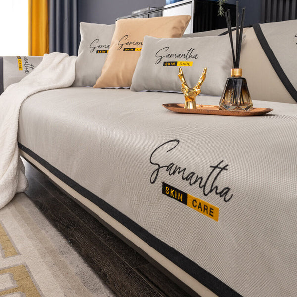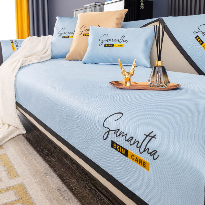 COOLING PREMIUM MATERIAL The summer sofa cover is made of ice silk fabric, which feels cool, soft and smooth, beautiful in appearance, comfortable in touch and breathable. Our sofa cover is the perfect addition to your home.