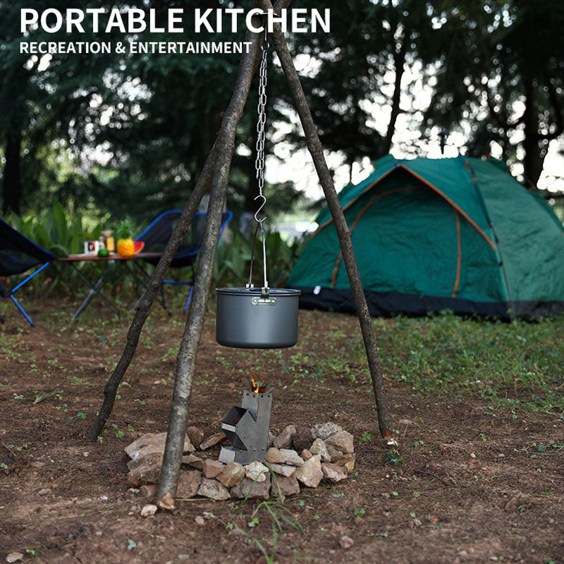 This outdoor pot holder triangular leg stand is a practical tool for camping barbecues. The hanging pot rack is made of high-strength aluminum alloy, which is reliable in quality and durable.
