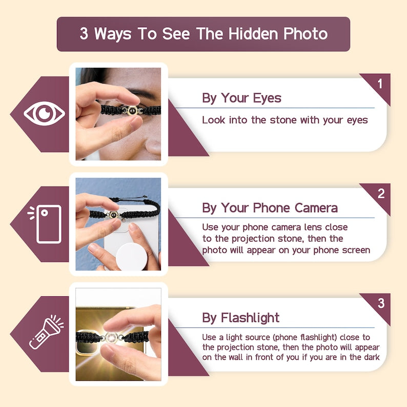 (4)Send the custom photo: Before making a purchase, send us the photo you want to embed, and we will create a one-of-a-kind bracelet for you.