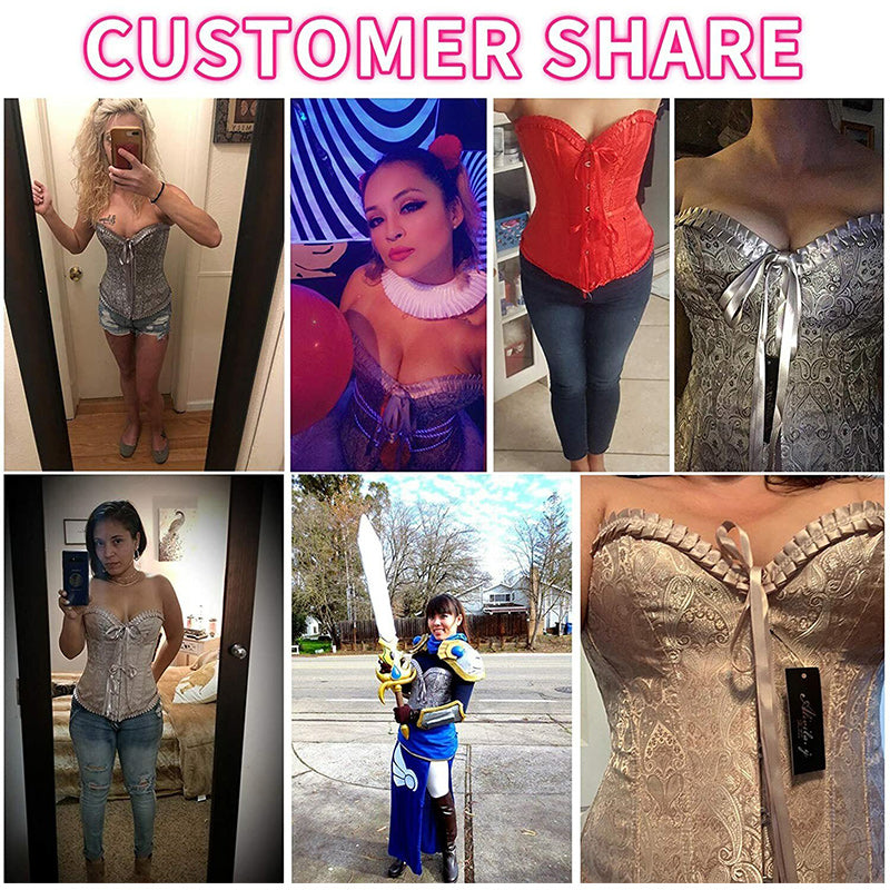 HIGH QUALITY: The fashion corset is made of high-quality satin material & surface brocade, gives your back support, and tummy control, and flattens your belly and abdominal area that helping you to achieve your ideal body shape. Increasing core thermal activity to burn extra calories and fat makes you look good and feel great. This affordable corset can be worn as an outer as well as lingerie to sculpt a perfect hourglass figure.