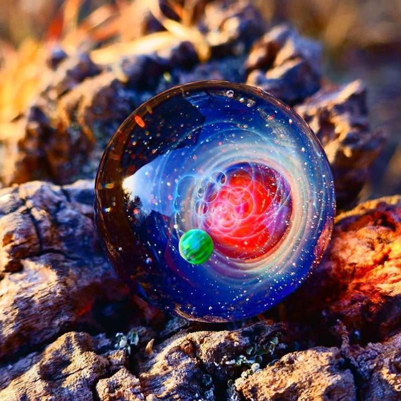 Check out this incredible galaxy glass art. These tiny blown glass orbs are out of this world!