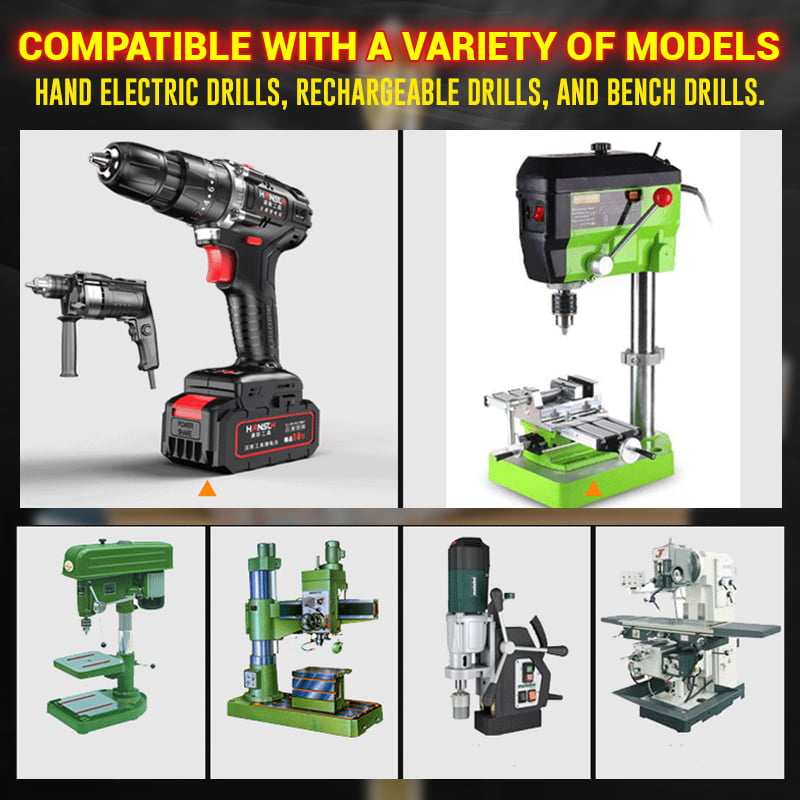 • Este taladro es adecuado para su uso en taladros eléctricos manuales, taladros recargables y taladros de banco. No se puede utilizar para taladros de impacto o martillos eléctricos, de lo contrario, el taladro se dañará.