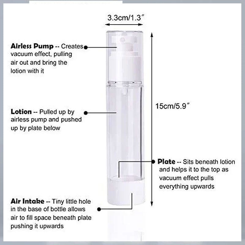The Airless Pump Bottle will help to minimize waste as product is being pushed up to the pump via a disk.