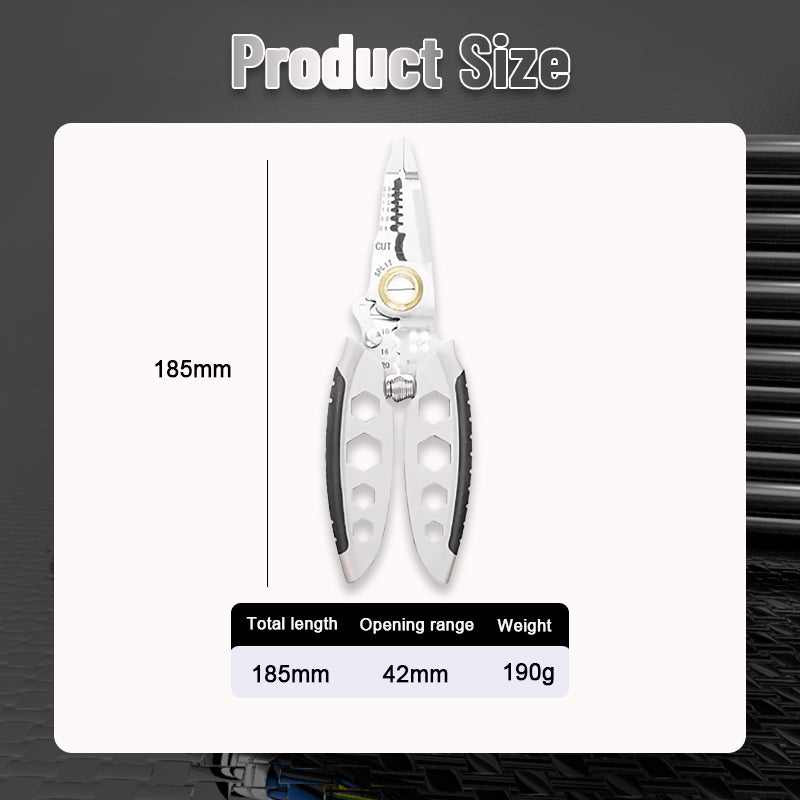 Practical multifunctional tool It meets the operational requirements of various electricians such as cutting, stripping, crimping, winding, dividing, clamping, and twisting wires. There is no need to replace pliers frequently during use, which improves work efficiency.