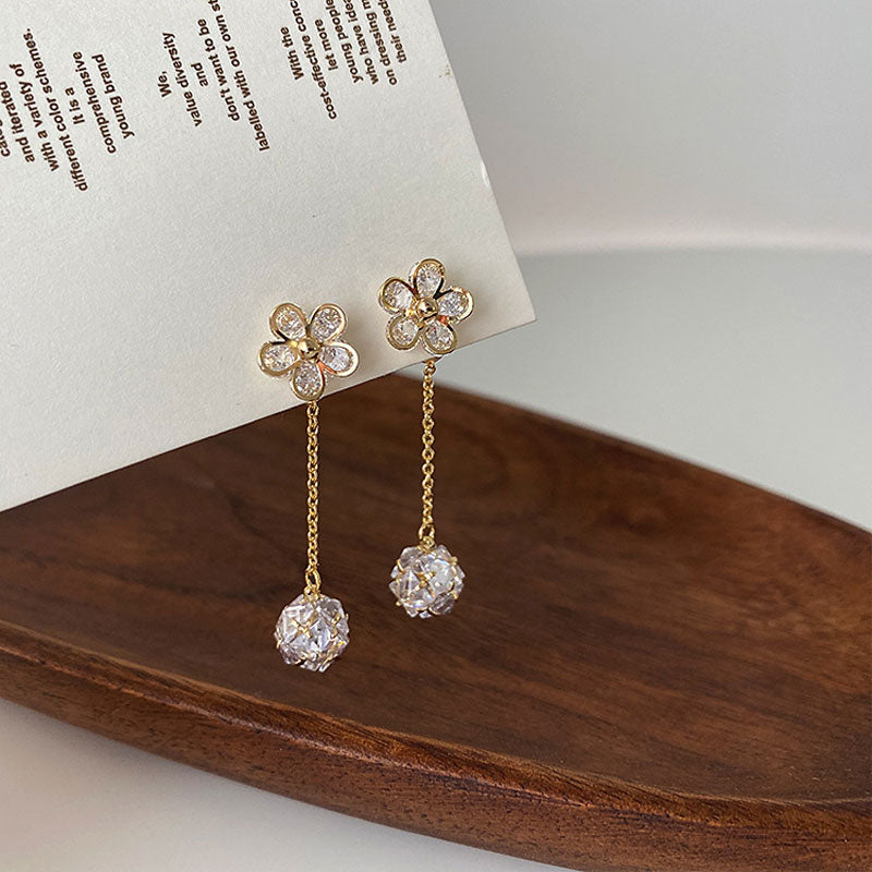 02#S925 Silver Needle Zircon Flower Earrings