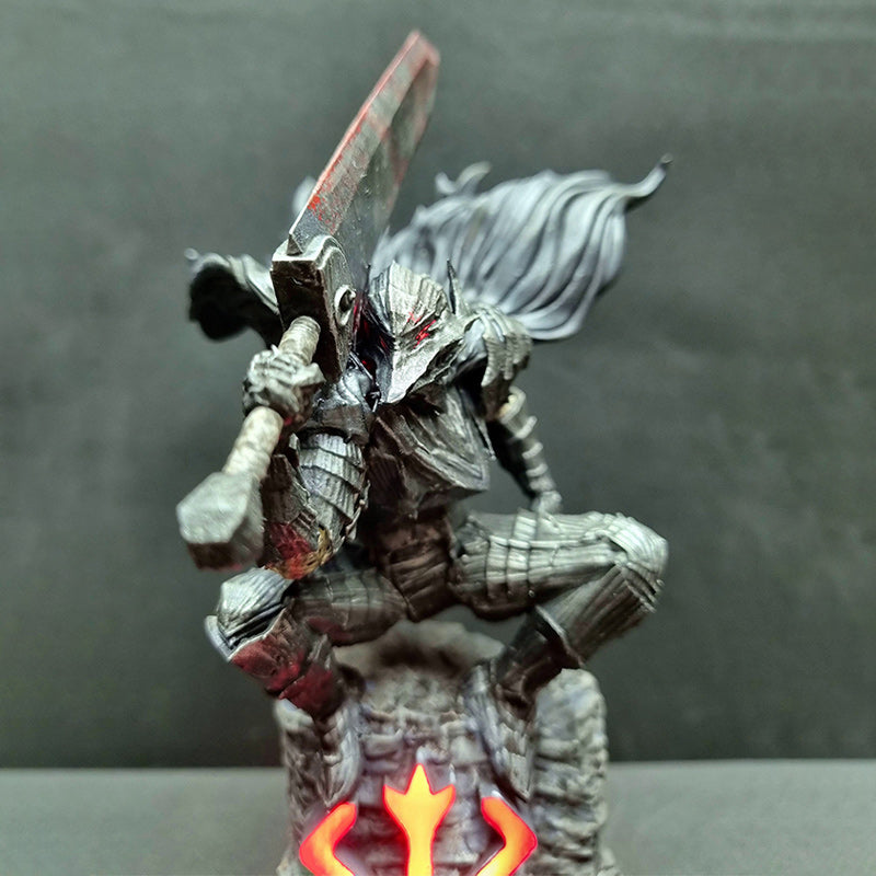 Guts from the manga Berserk, renowned as the "Black Swordsman", is a former mercenary and branded wanderer who travels the world in a constant internal struggle between pursuing his own ends and protecting those dear to him.