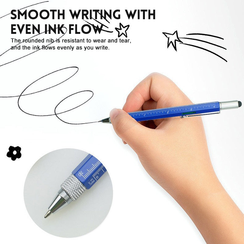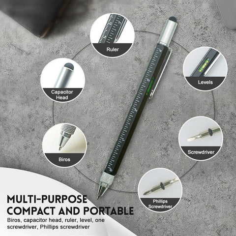 • All In One Multi Tool Pen: This unique tech gadget tool pen combines ruler, ballpoint pen, stylus, spirit level, flat head, Phillips screwdriver, 6 in 1 design, perfect for men,dad DIY working and gifts.