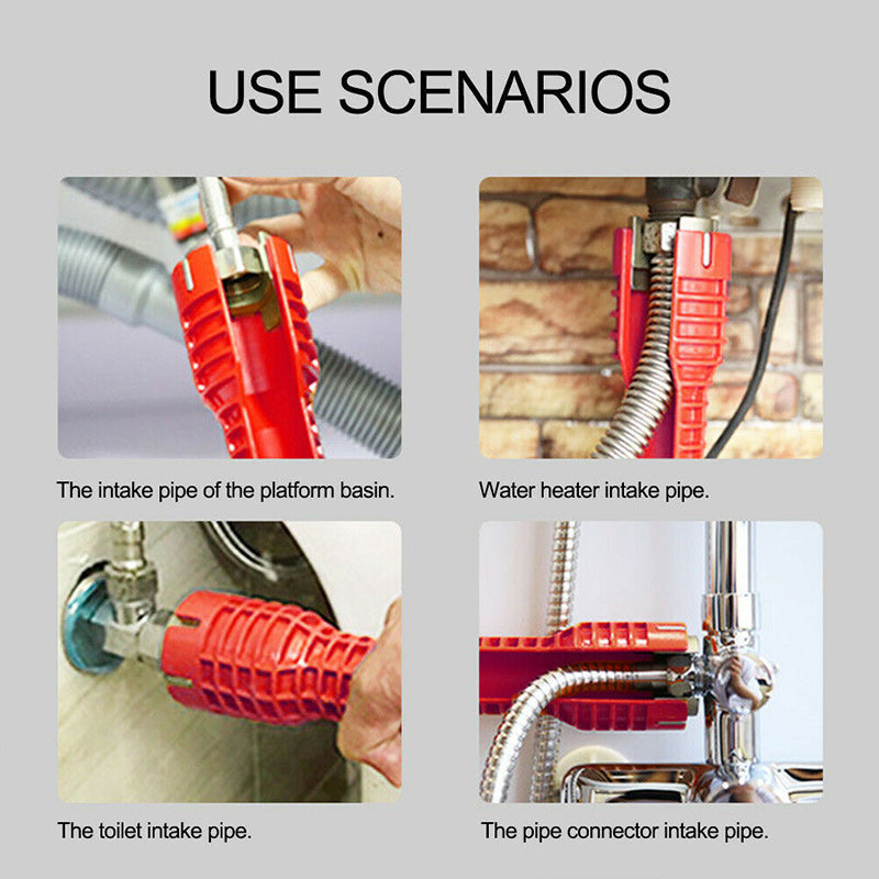 Tighten and loosen screws in hard to reach places with this all-in-one tool!Don't you just hate trying to squeeze yourself in tight corners just to reach the nuts underneath your faucet? Now you won't ever have to contort yourself to fit in tight spaces again with thisamazing 8-in-1 Sink Wrench!