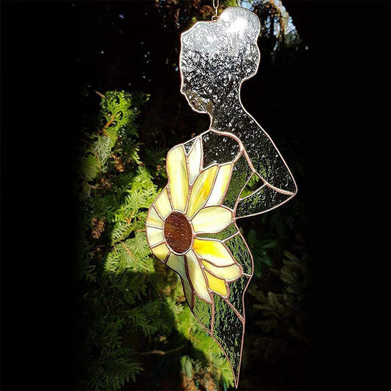 1. Design: A organic glass silhouette of a pregnant woman with a sunflower as belly. The heart of the flower sits where the precious little baby grows safe and secure.