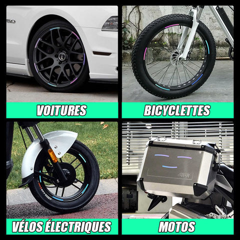 Améliorez en même temps l'apparence et la sécurité de votre voiture. Commandez dès maintenant des autocollants réfléchissants pour roues et prenez la route avec style !
