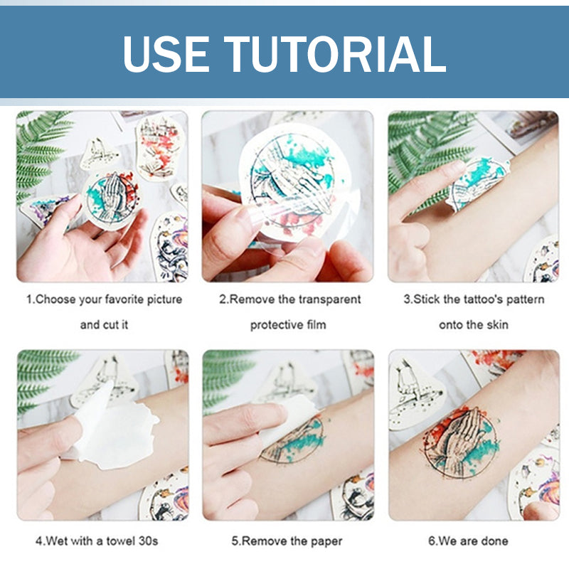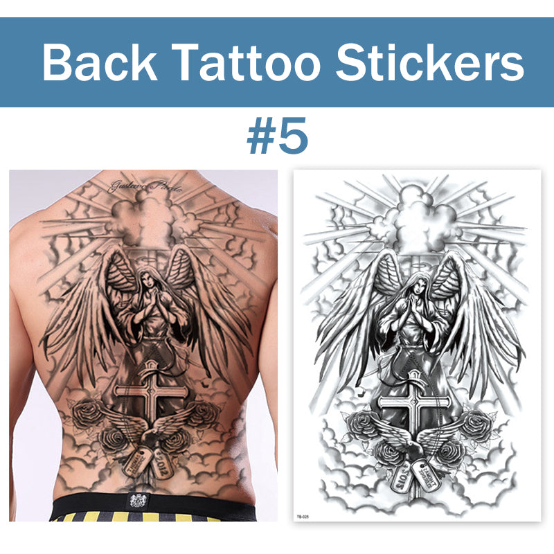 • Easy to use and remove. Back tattoos can last 3-5 days. Durable and waterproof. Depending on how many times you shower and how many times you scrub your tattoo with soap and water, it can be easily applied in 10-20 seconds with just water and easily removed with alcohol, body oil, olive oil.