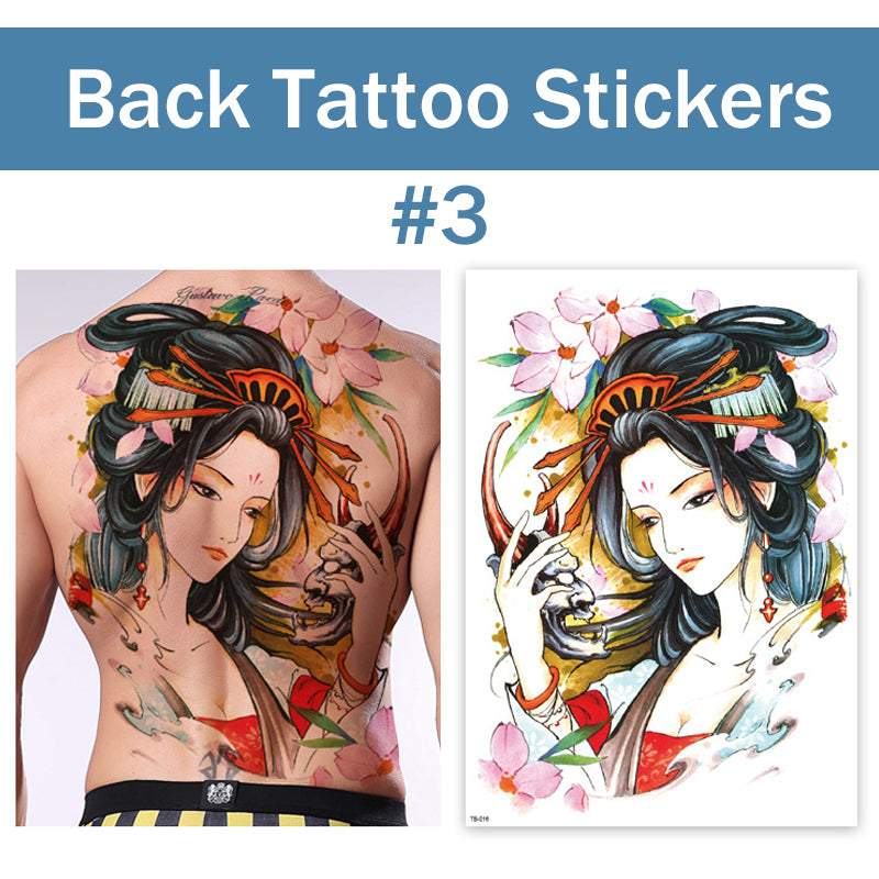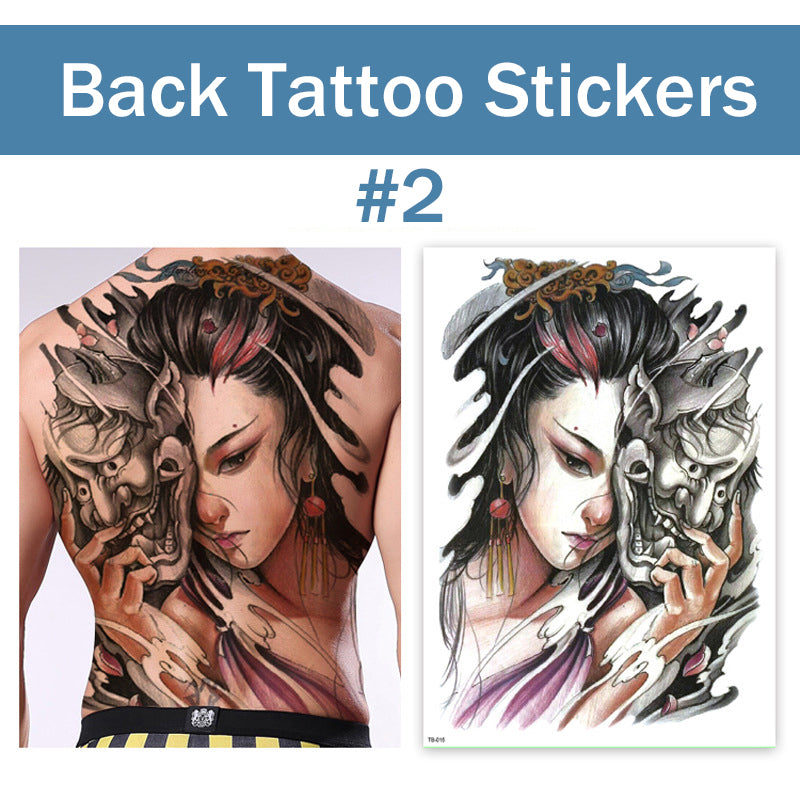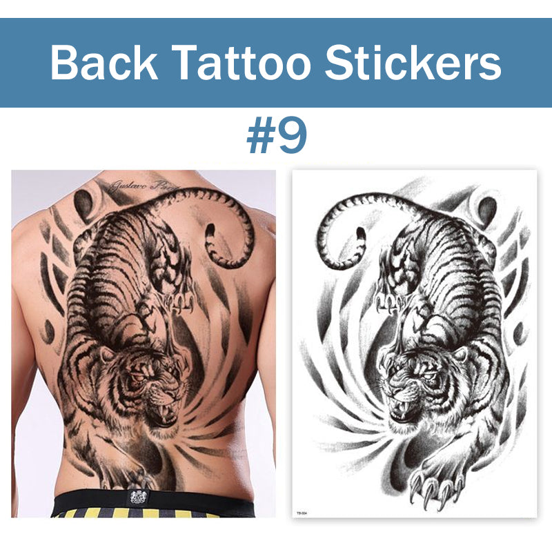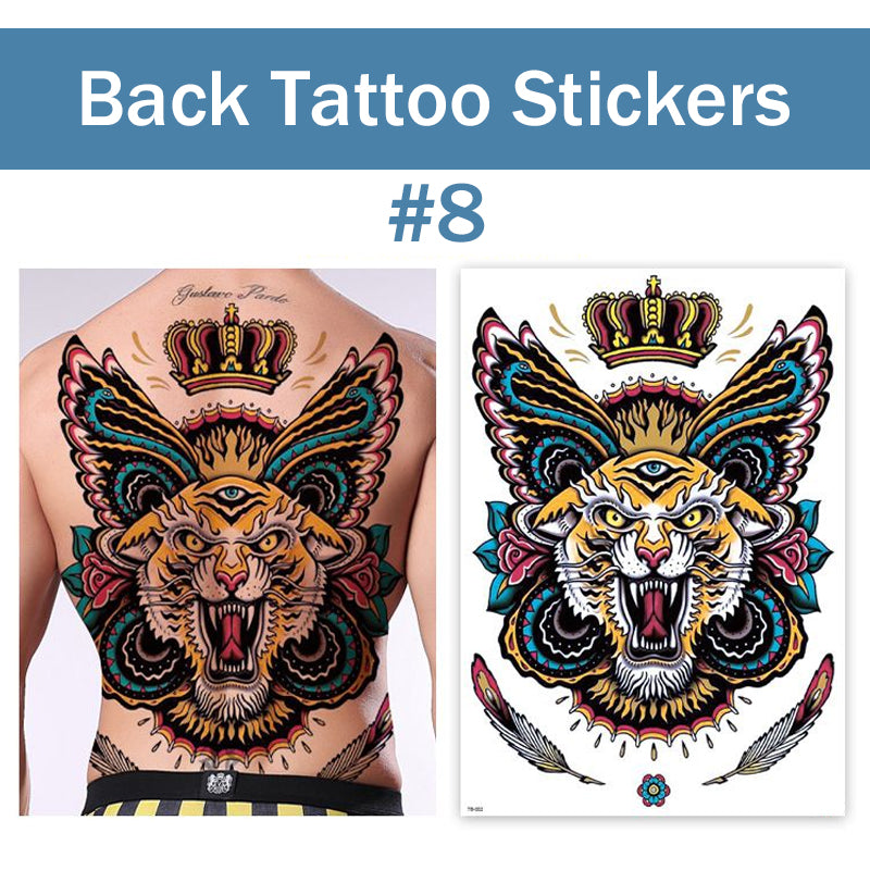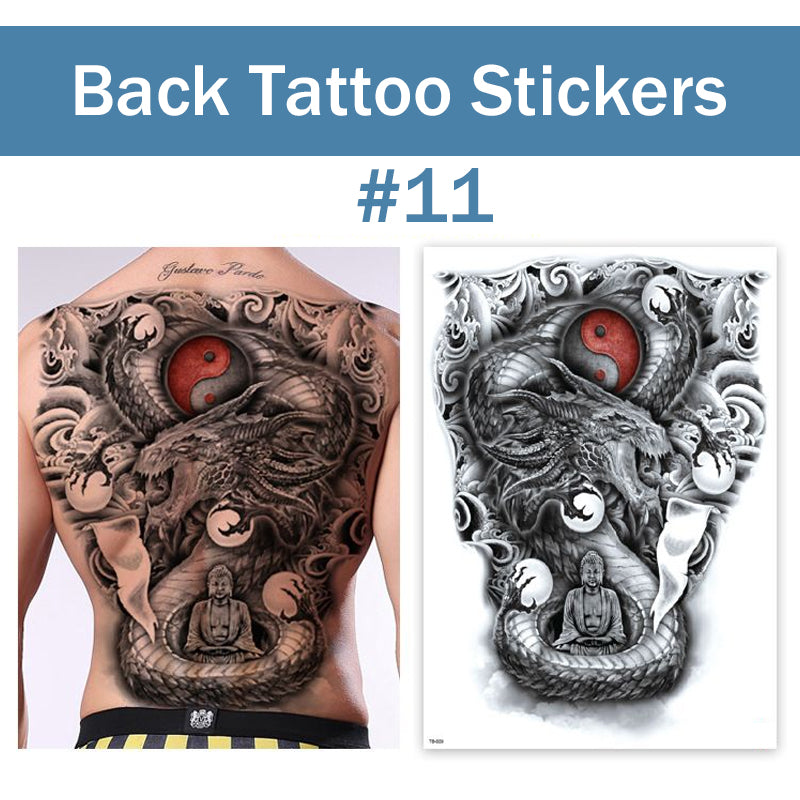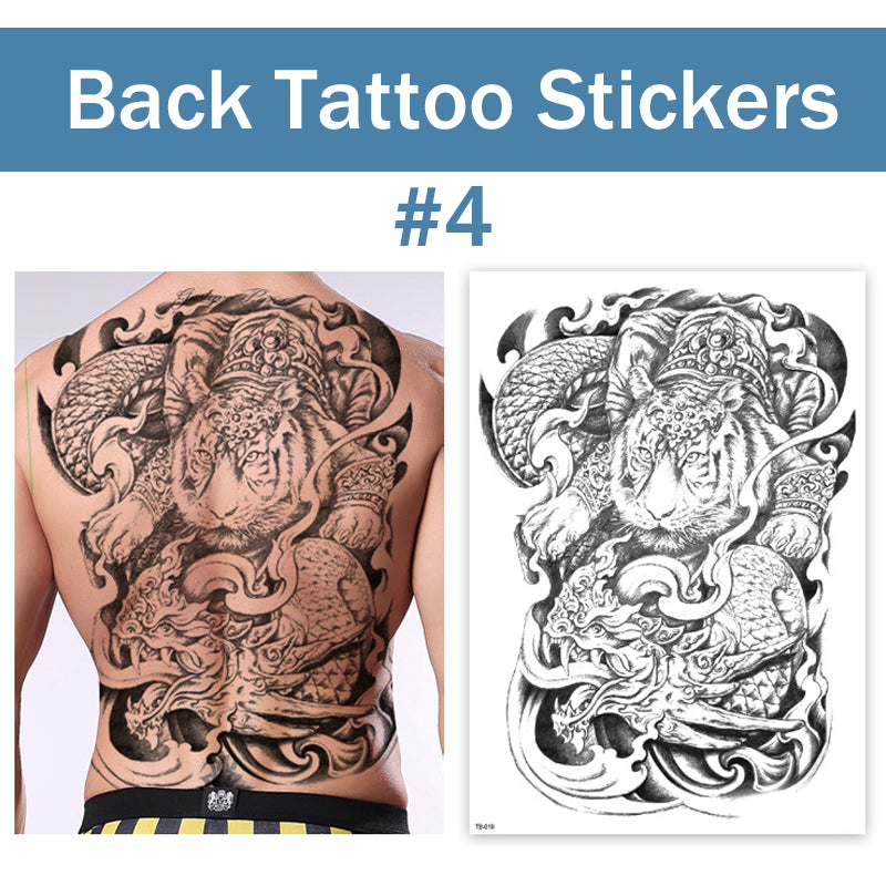 • Full back tattoo sticker for men and women. Totem tattoos with different patterns like dragon, lion, bull head etc. The latest fashion designs to show off your fake tattoos anywhere! Express your personality with the look of a real tattoo.