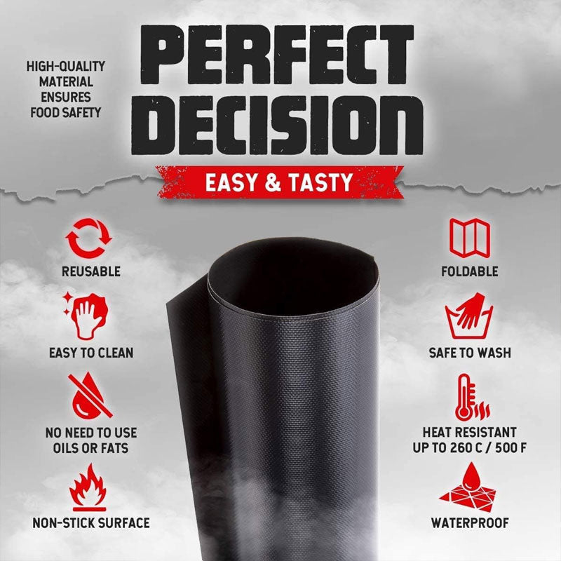 Our grill mats are made of high-quality non-stick material to ensure your food stays intact while getting ideal grill marks. No more flare-ups or frustrating sticking issues. Enjoy juicy, evenly cooked meats and perfectly grilled vegetables with every use!