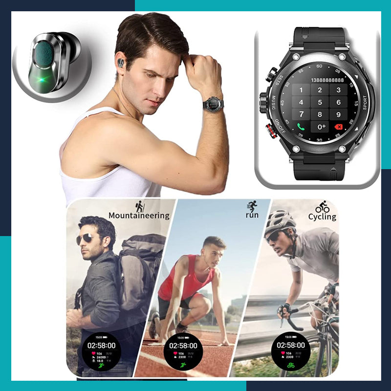 New Design: The designed 3-in-1 smart watch is a perfect combination of smart watch, bluetooth earphone and speaker. The smartwatch acts as a 24-hour continuous heart rate monitor, sleep monitor, pedometer, calorie counter, and pedometer, with bluetooth earphones neatly stored on the side of the watch.